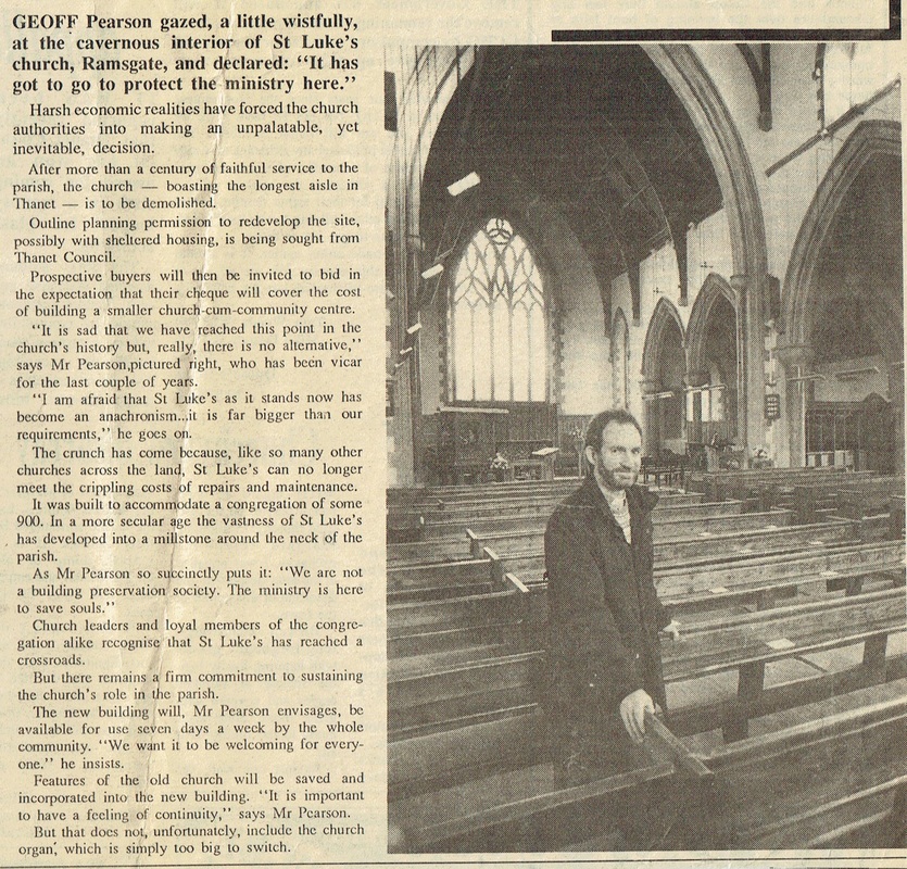 Below is a cutting from a local paper (Friday 11th November 1988). It features a picture of the then vicar, Geoff Pearson standing in the church. At this time plans were put forward to sell off St. Luke’s to be used for affordable housing and use the money to build a smaller more compact community hall and church on the hall site. The plans progressed a long way and received the support of most of the congregation at the time. However, in the end the house prices changed and the scheme became economically impossible and was abandoned.