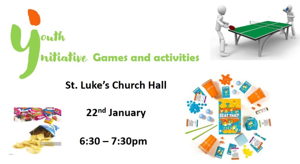 Following this study time, if games and activities are more you thing, do join us at St. Luke’s church hall from 18:30-19:30.