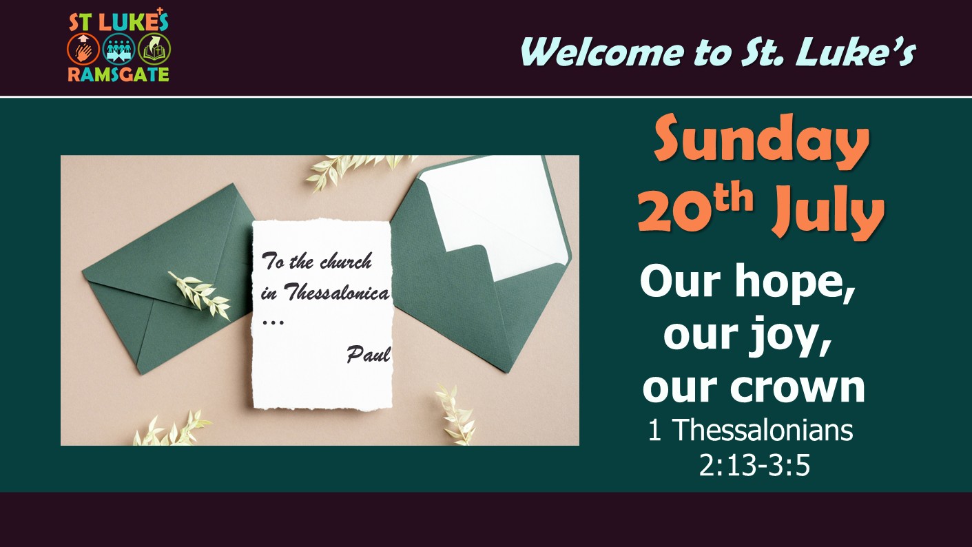 Sunday 20th July, 11:00am – Livestream Posted bypaulworledge19th Jul 202510th Jul 2025Posted inLivestream This Sunday at St. Luke’s: Our hope, our joy, our crown – 1 Thes. 2:13-3:5 Share this: Click to share on X (Opens in new window) X Click to share on Facebook (Opens in new window) Facebook Like Loading... Related