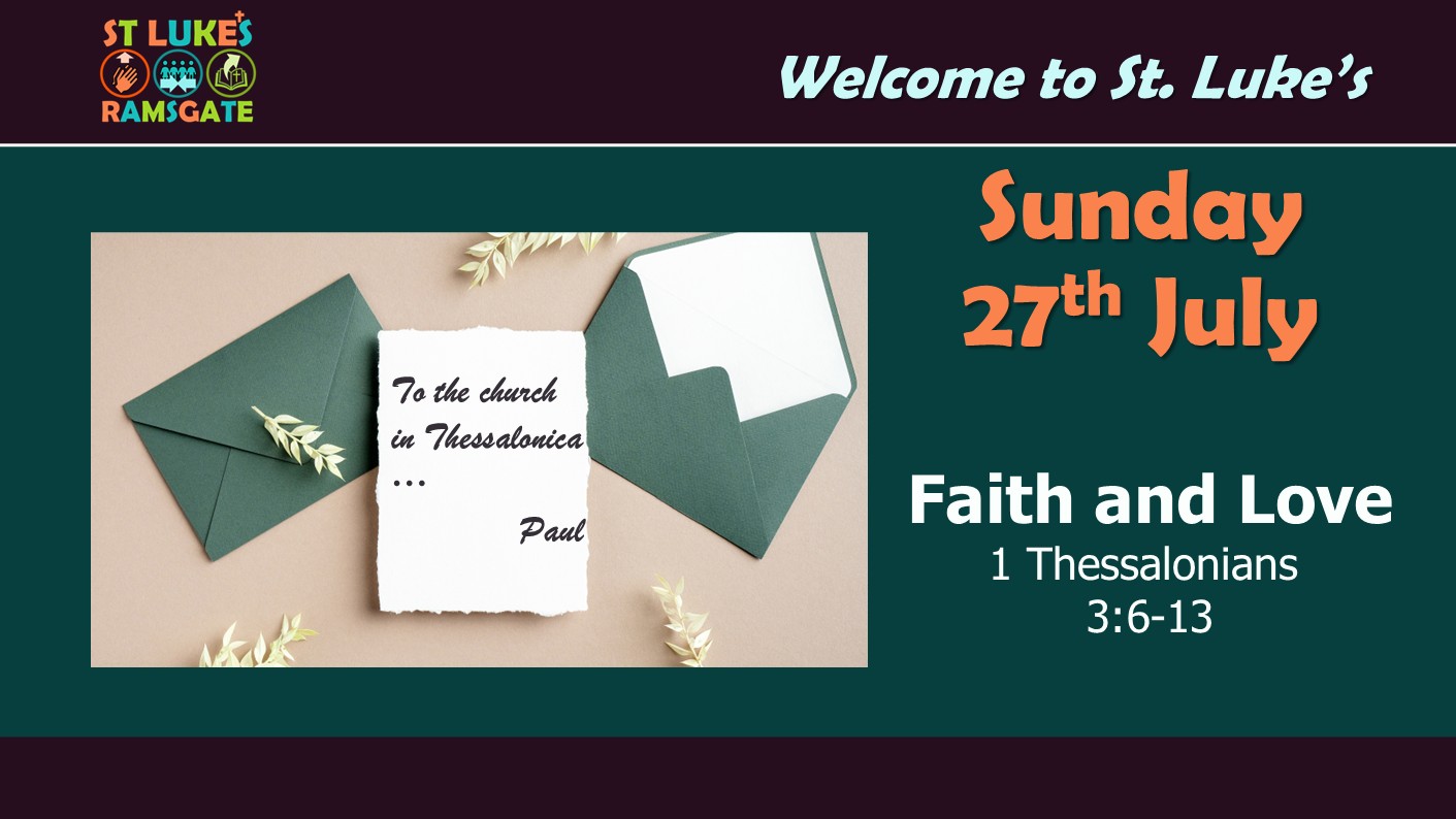 Sunday 27th July, 11:00am – Livestream Posted bypaulworledge26th Jul 202510th Jul 2025Posted inLivestream This Sunday at St. Luke’s: Faith and Love – 1 Thes. 3:6-13 Share this: Click to share on X (Opens in new window) X Click to share on Facebook (Opens in new window) Facebook Like Loading... Related