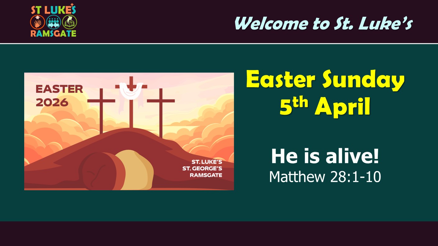 All Age Holy Communion and Celebration (St. Luke’s, 11am) – Celebrating the resurrection of Jesus and the hope of life it brings.