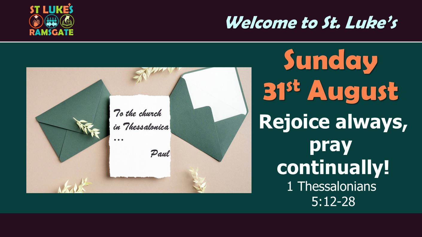 This Sunday at St. Luke’s: Rejoice always, pray continually – 1 Thes. 5:12-28