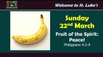 - Sunday 22nd March, 11:00am – LivestreamPeace (Philippians 4:2-9) This Sunday we will be looking at ‘Peace’ as the third characteristic of the fruit of the Spirit. The children’s groups will be running as normal.